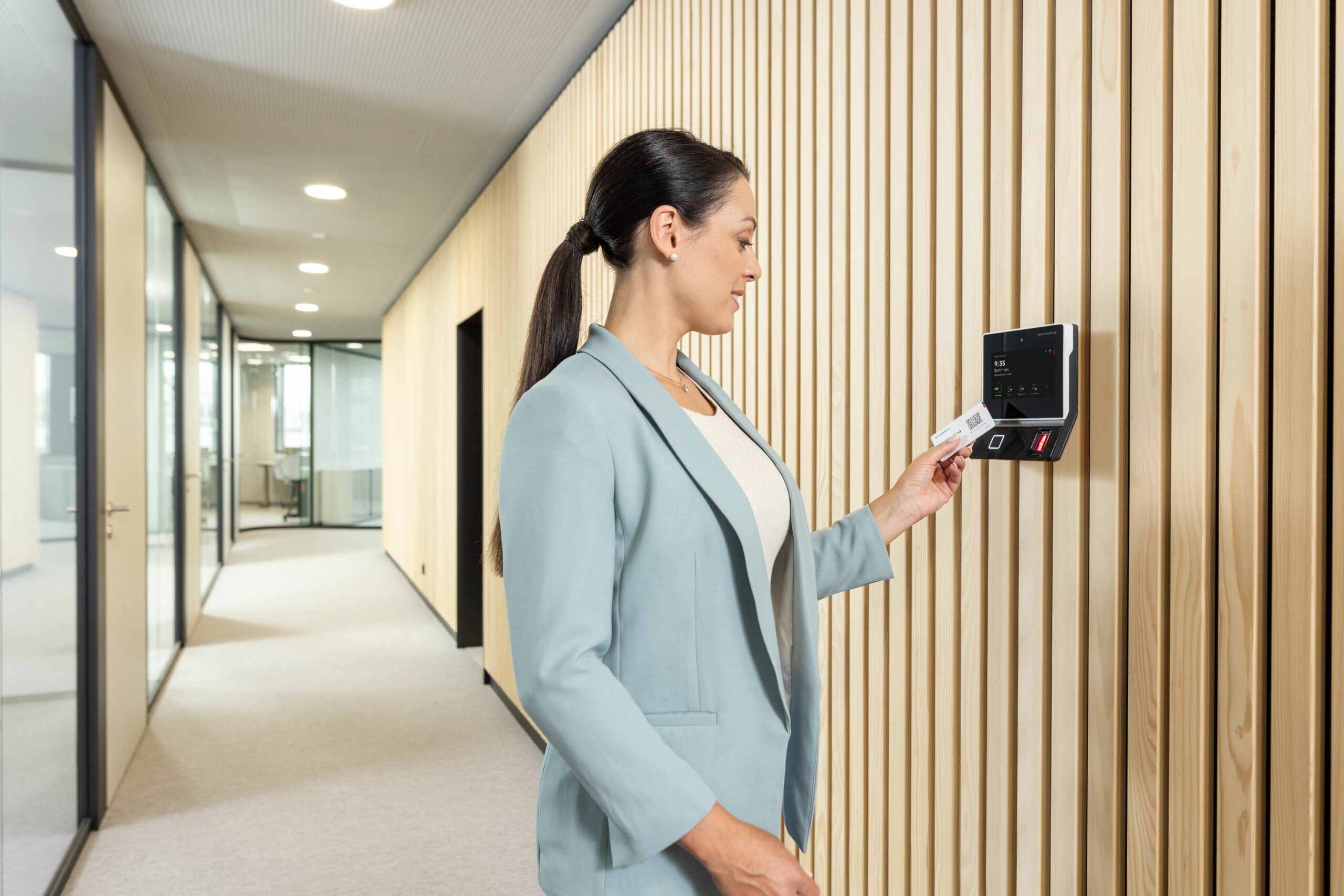 El terminal 96 00-K7 se adapta a las necesidades de las empresas modernas gracias a su diseño compacto y a sus sencillas funciones de control de presencia. Con una pantalla táctil de 5 pulgadas de alta resolución y resistente a los arañazos, ofrece una interfaz navegable para el uso diario. Las múltiples opciones de identificación del terminal, como smartphone, RFID y entradas biométricas opcionales, proporcionan un registro del tiempo y un control de acceso seguros y adaptables.